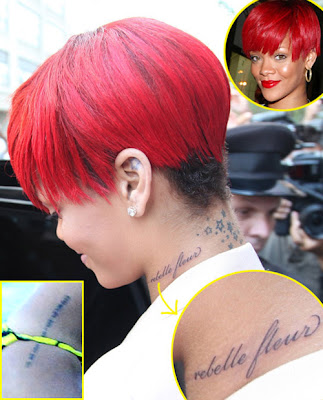 Rihanna também foi vitima de problemas de idioma. Ela tatuou uma expressão em francês que era pra ter essa tradução “Flor Rebelde”. Mas, ela fez “Rebelle Fleur” colocando o adjetivo antes do substantivo. E assim ficou “Rebelde de flor”. Como diria o Chaves “Ai que burra, dá zero pra ela!”.